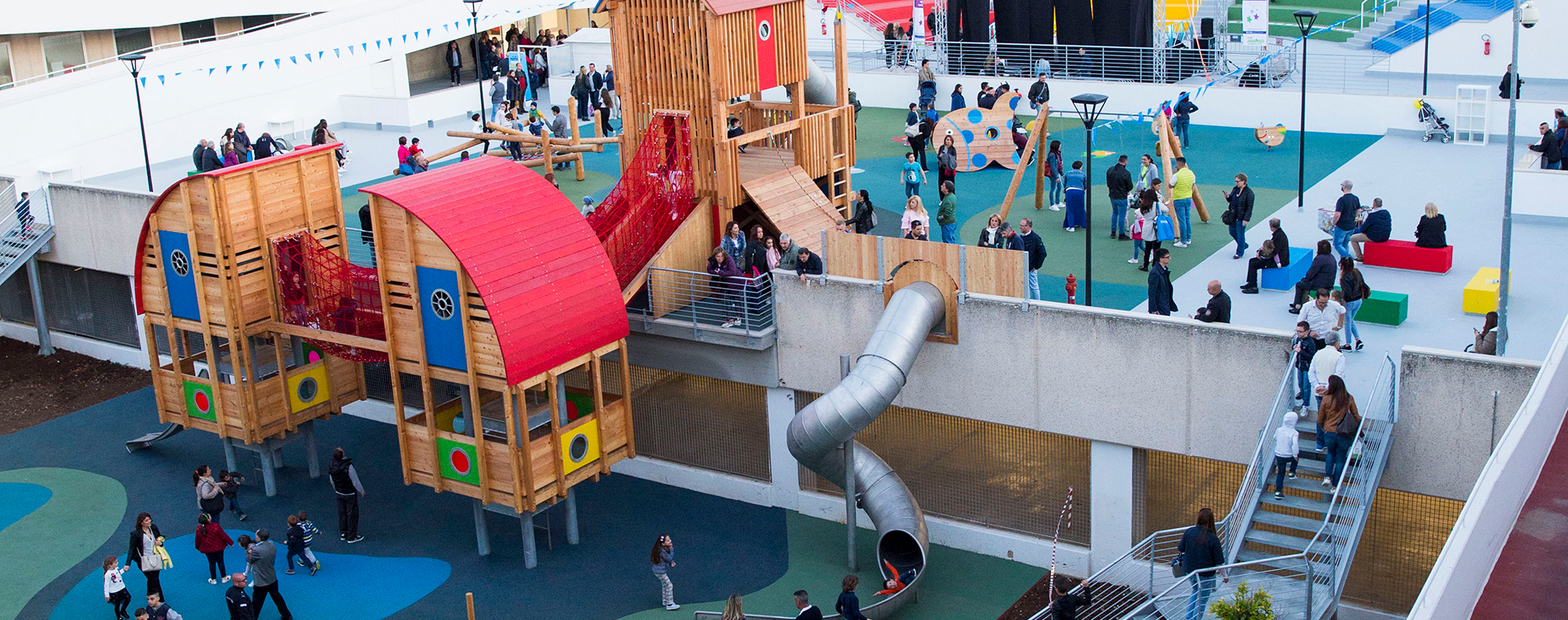 Siamo stati i primi a introdurre nei Centri Commerciali le pedane giochi in legno con pavimentazione antiscivolo e i primi playground scenografati. Oggi siamo presenti con oltre 500 Aree Ludiche, distribuite in tutta Italia. Con il brand YOUNGO, grazie a uno staff formato e qualificato, gestiamo direttamente 16 Family Entertainment Center, da noi realizzati all’interno dei Centri e dislocati su tutto il territorio nazionale.